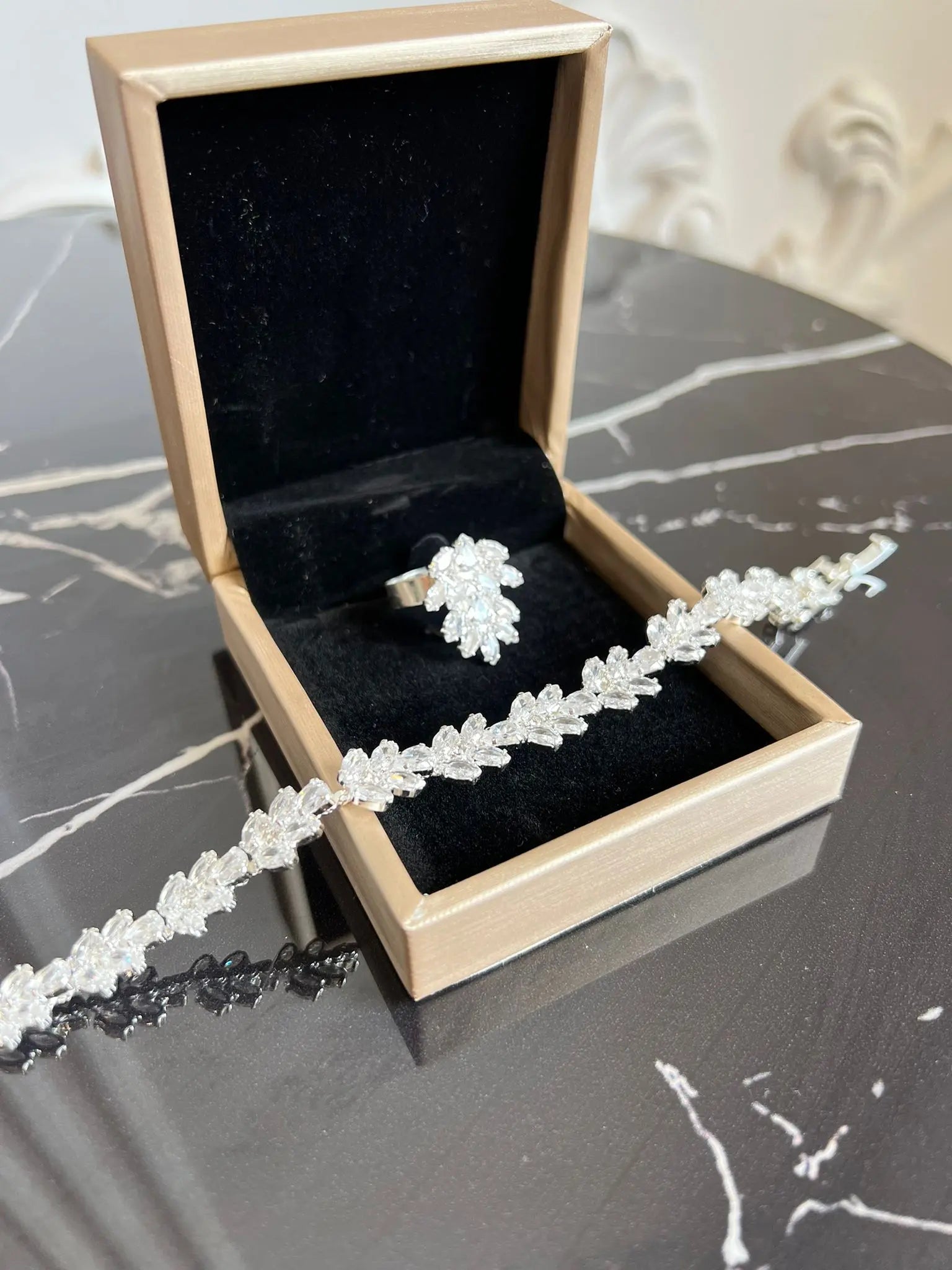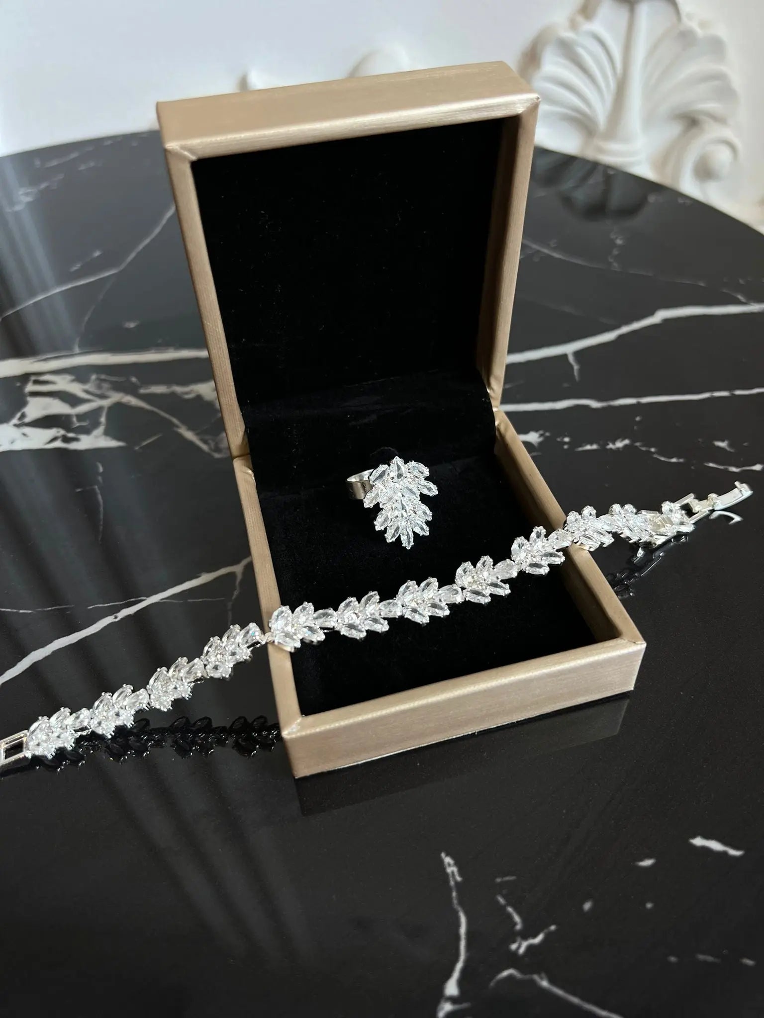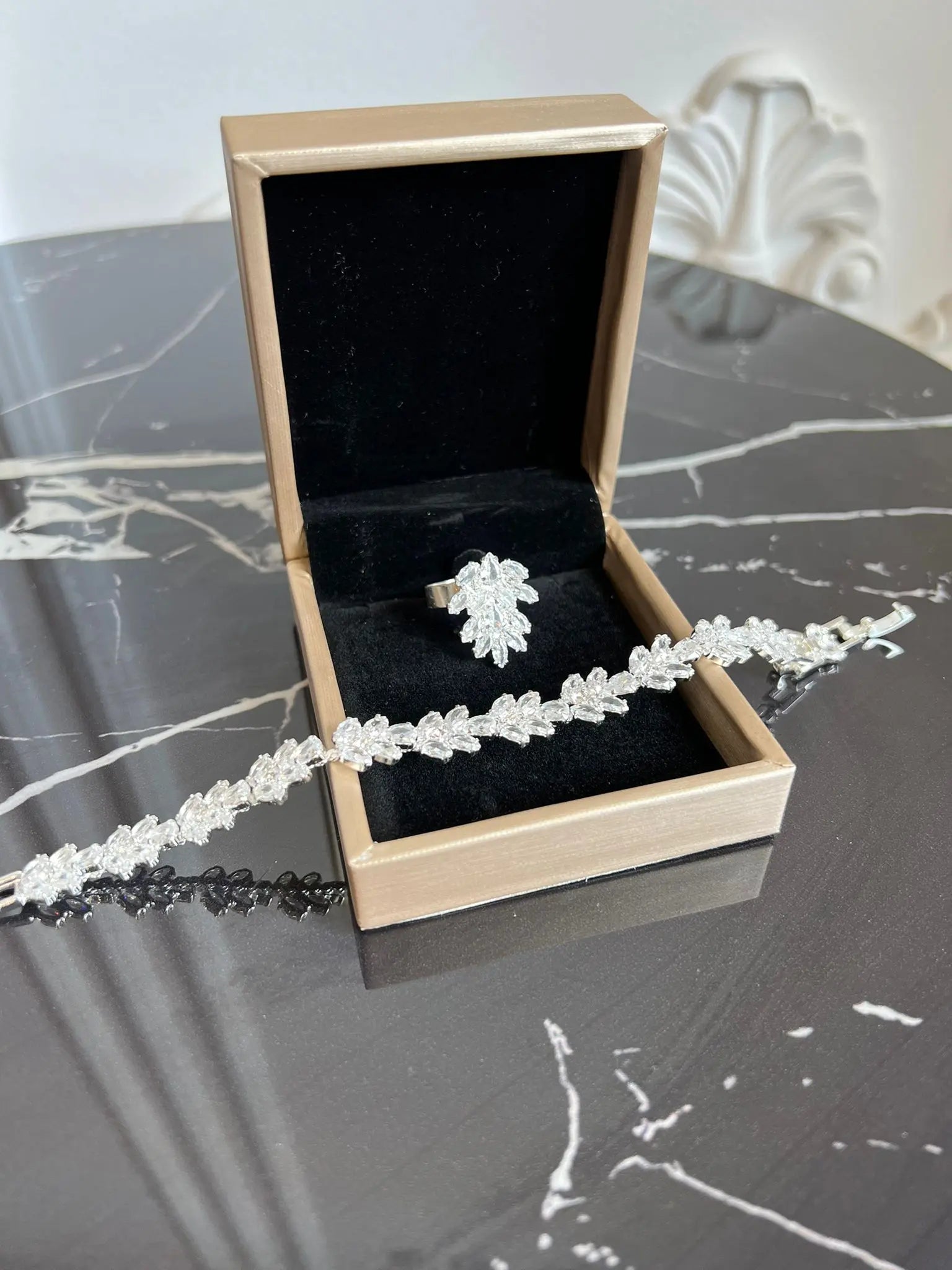 Set bratara si inel Elysia, placat aur alb, zirconiu cubic AAA