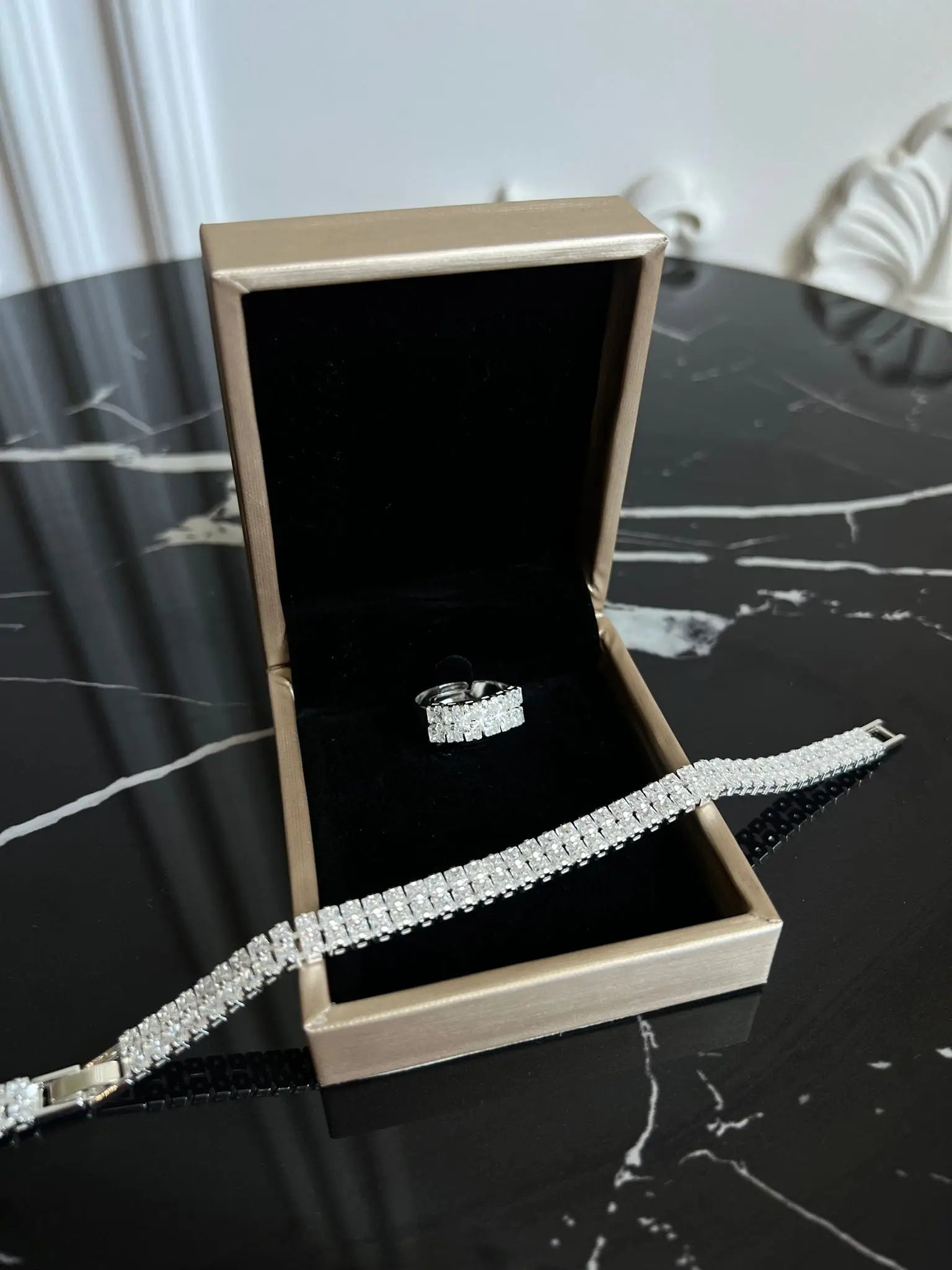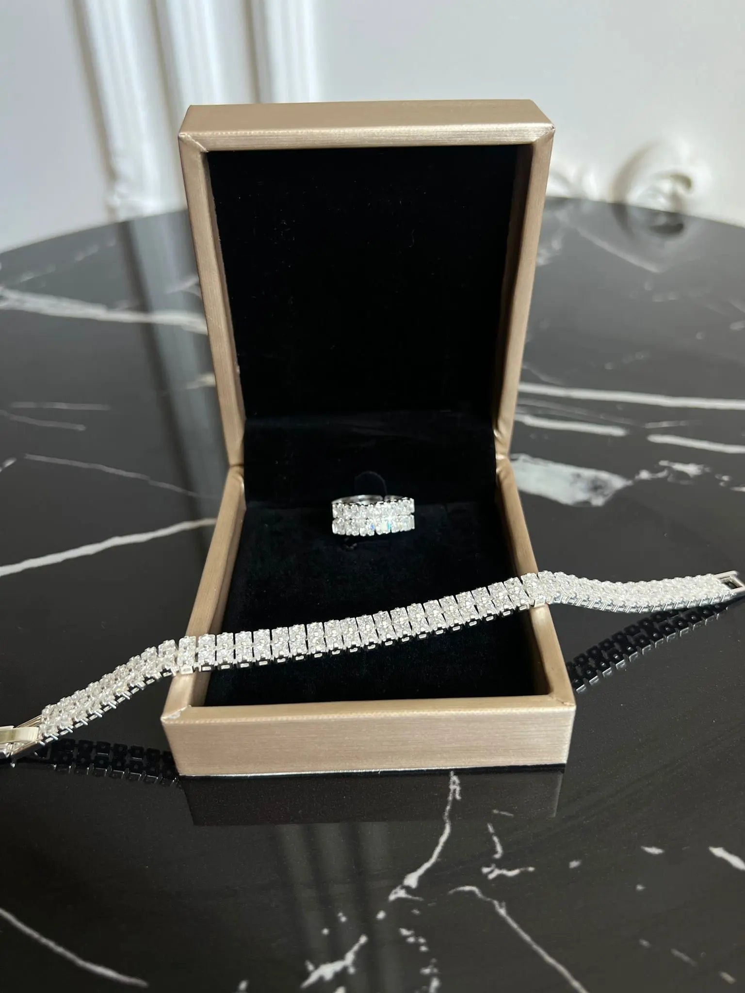 Set bratara si inel Kaia, placat aur alb, zirconiu cubic AAA