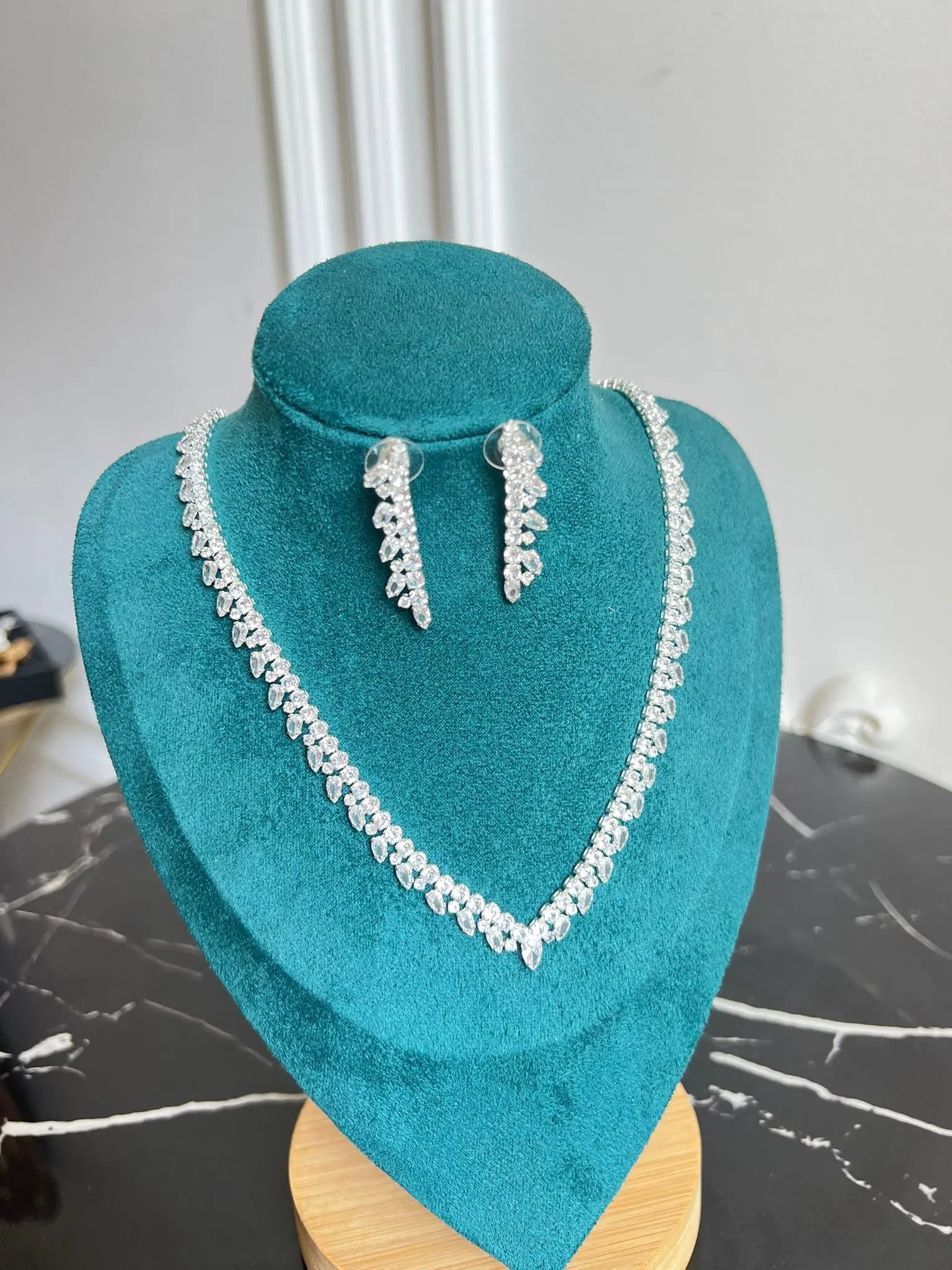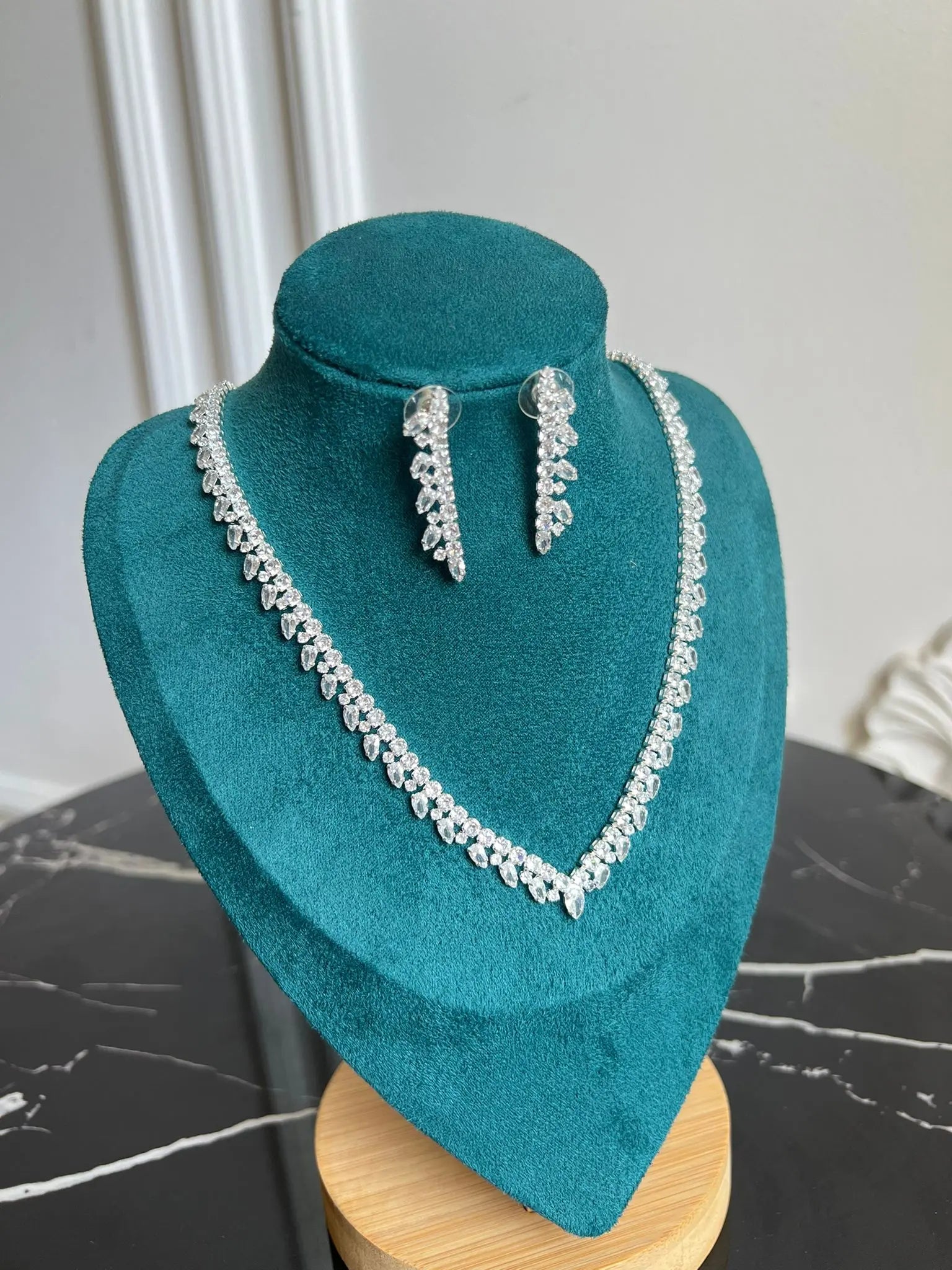 Set cercei si colier Nerida, zirconiu cubic AAA, placat aur alb