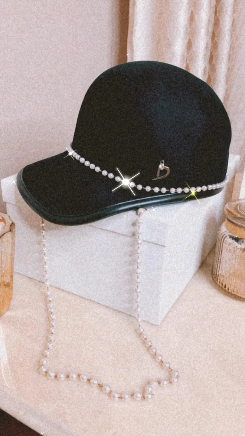 Sapca Anelisse, elegantă, lant din perle, lana, stil ecvestru