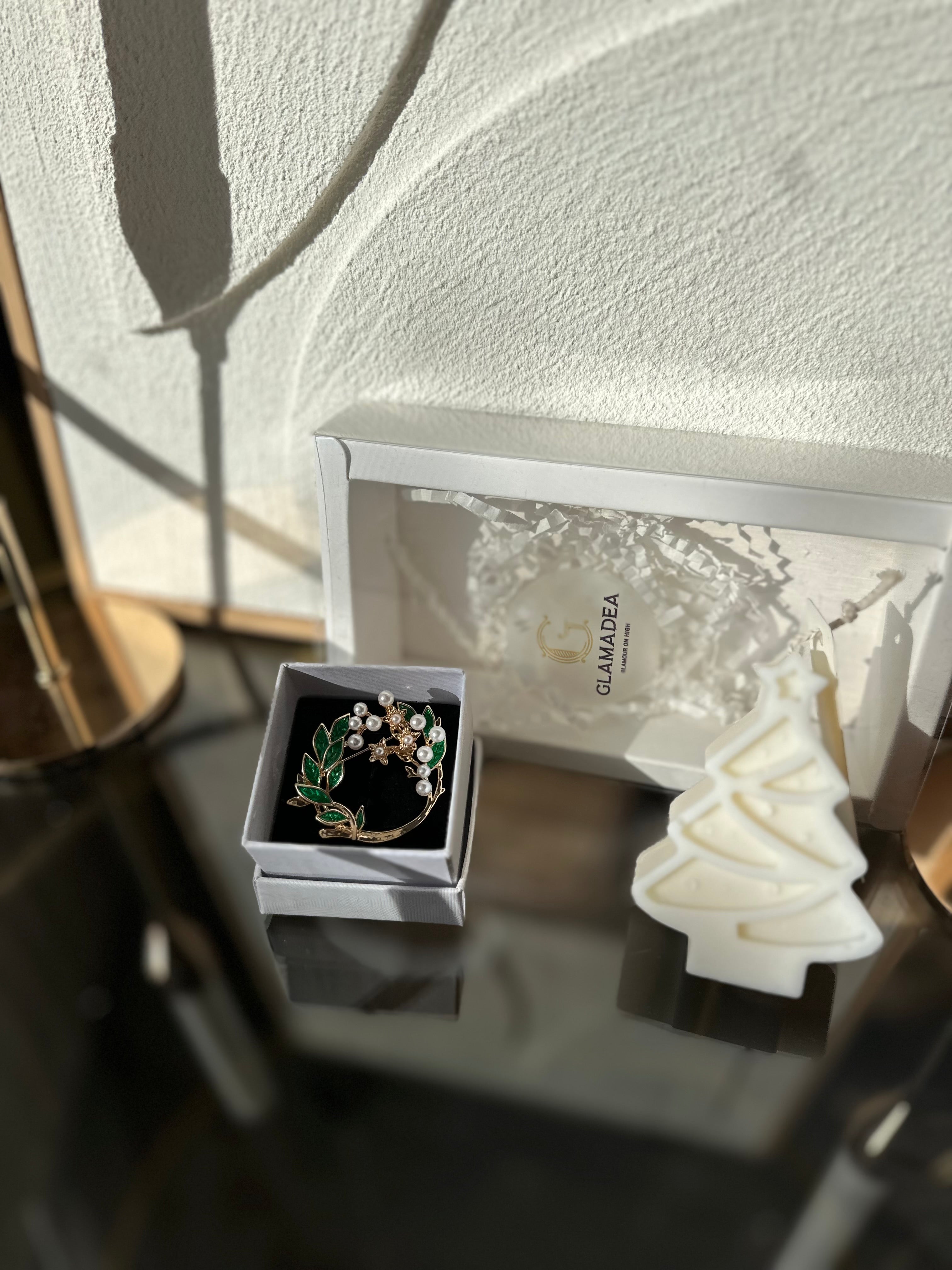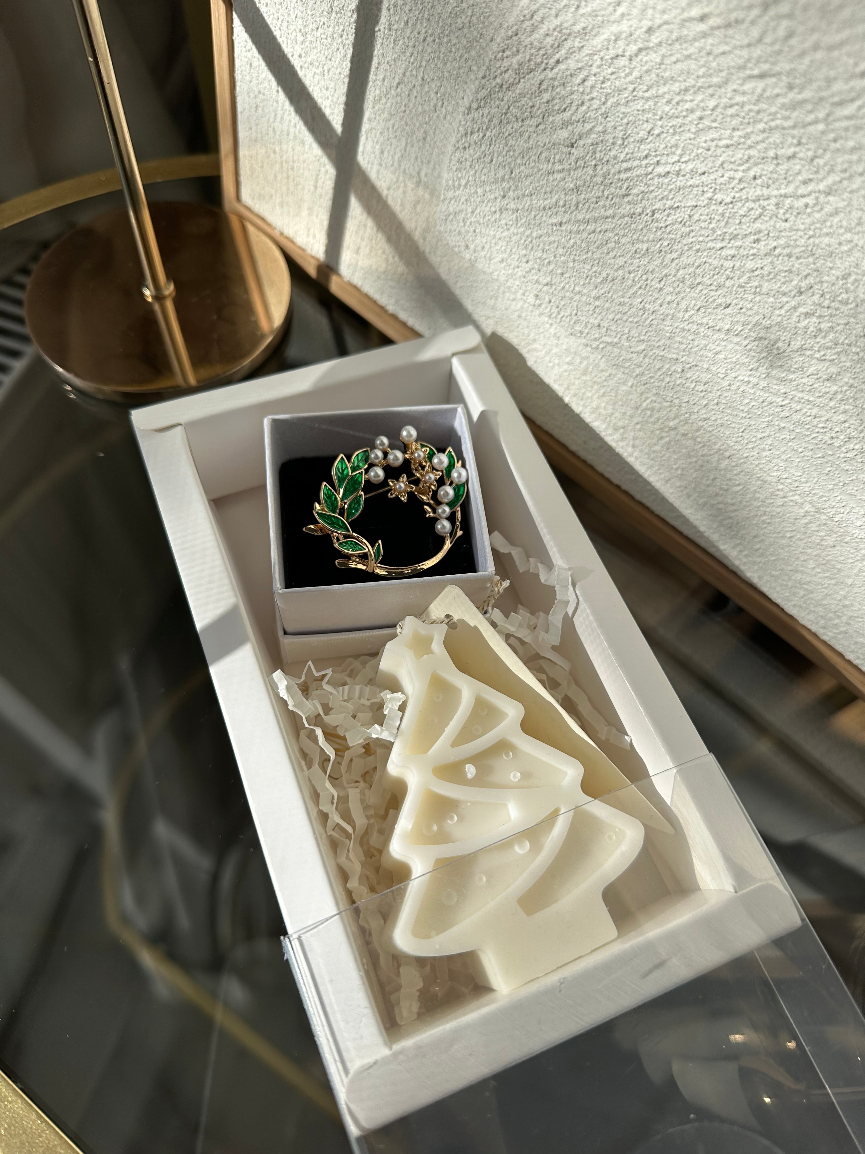 Set Cadou de Sărbători – Broșă Craciun & Lumânare Parfumată din Soia în Formă de Brăduț