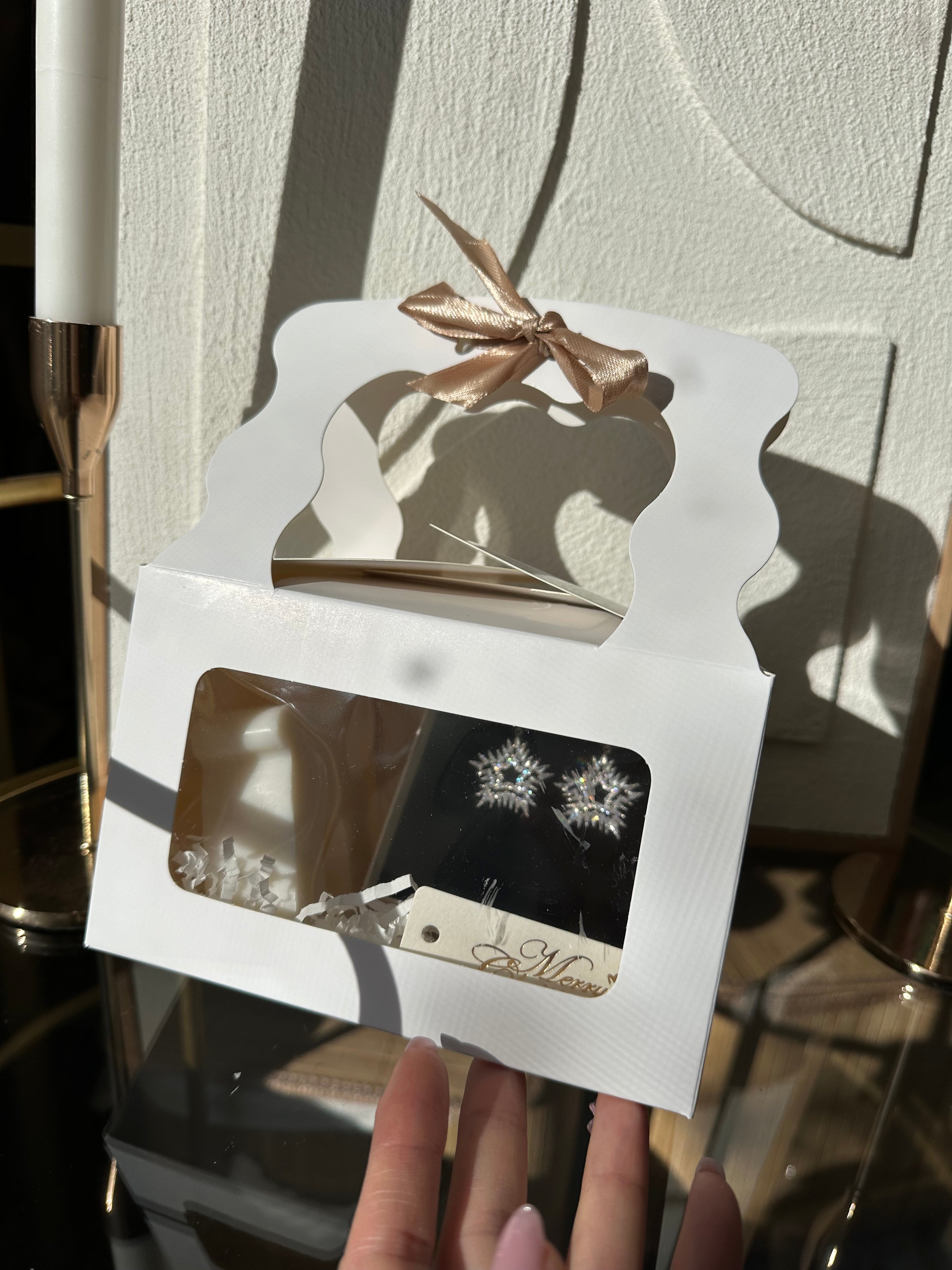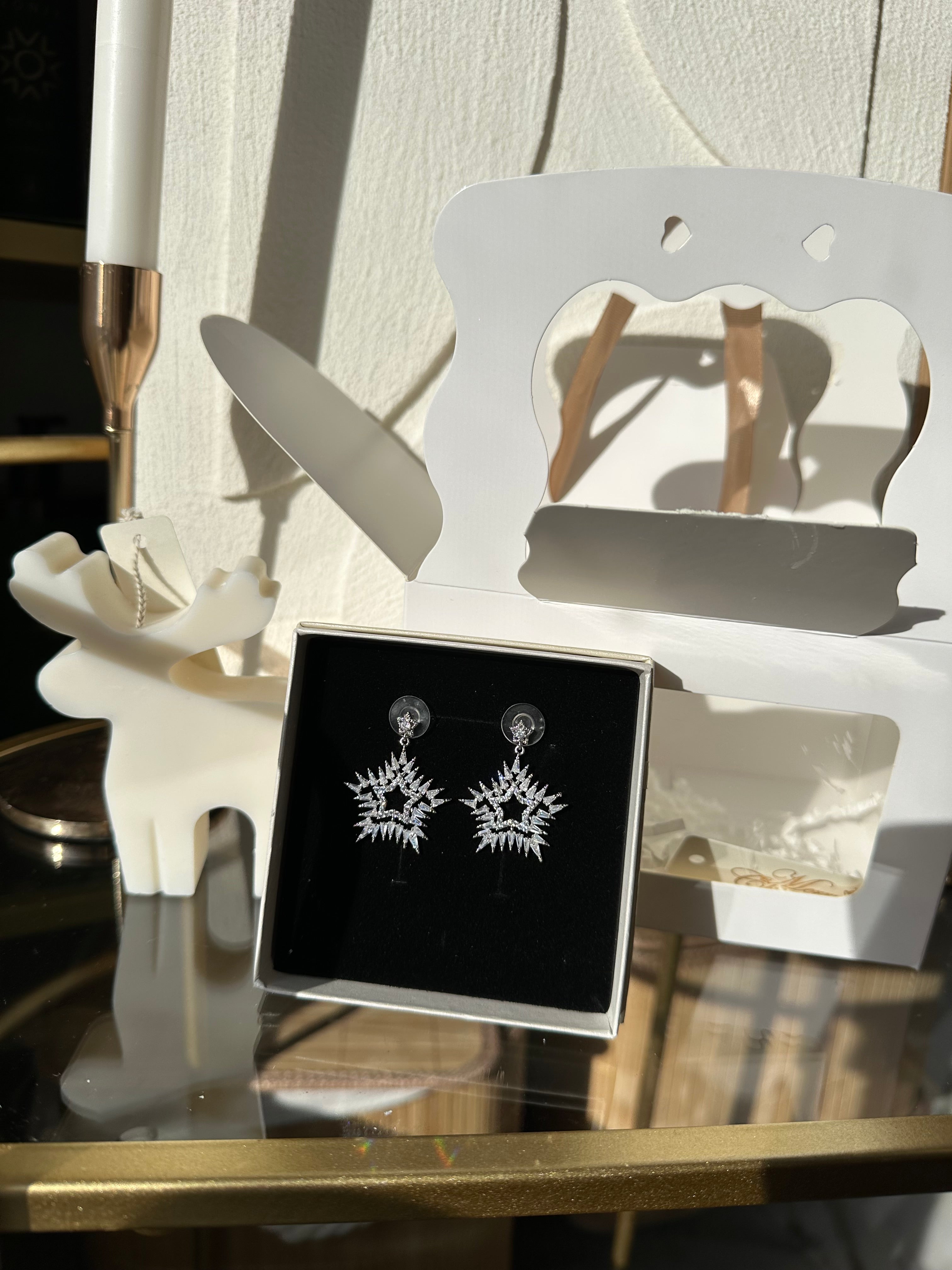 Set Cadou de Sărbători – Cercei Fulg de Nea & Lumânare Parfumată în Formă de Ren