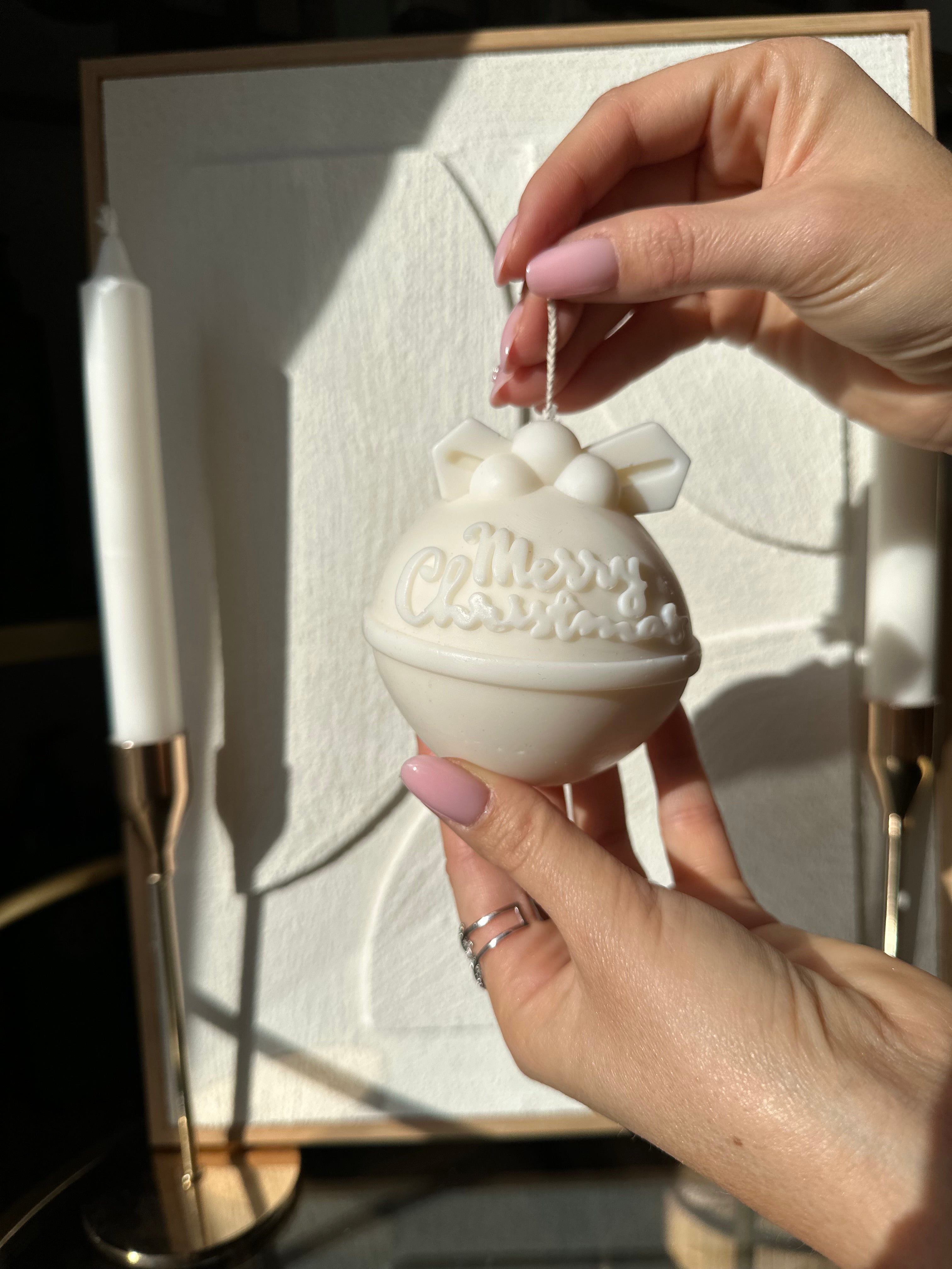 Turnată manual din ceară de soia naturală, lumânarea vine în forma delicată și festivă a unui glob de Crăciun. Parfumul său plăcut completează atmosfera sărbătorilor, iar forma rotundă o transformă într-un element decorativ adorabil pentru orice casă. Ardere curată, durabilă și un aer cozy perfect pentru zilele de iarnă.