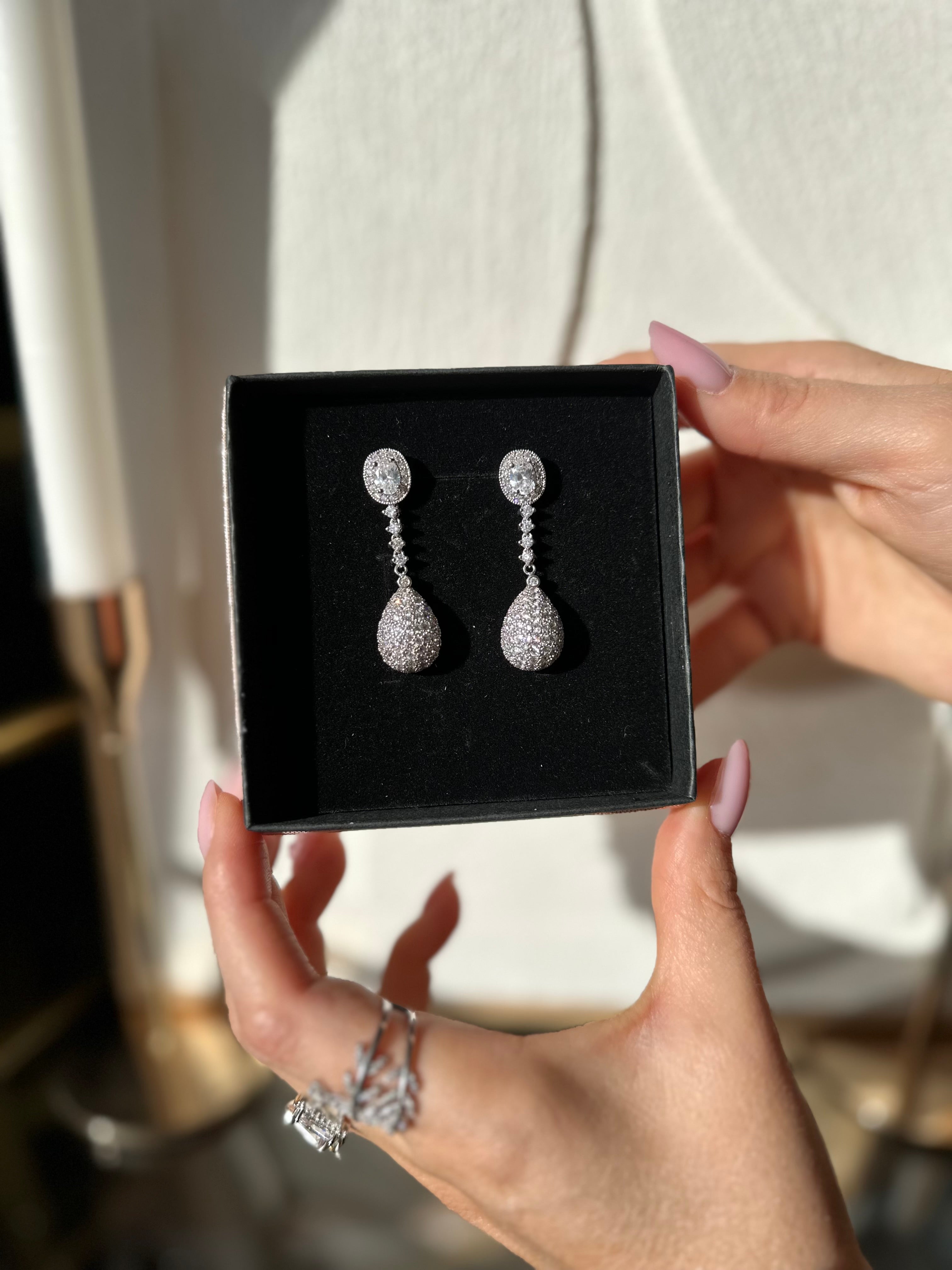 💎 Cercei picătură curgători – placare cu aur alb & zirconiu cubic