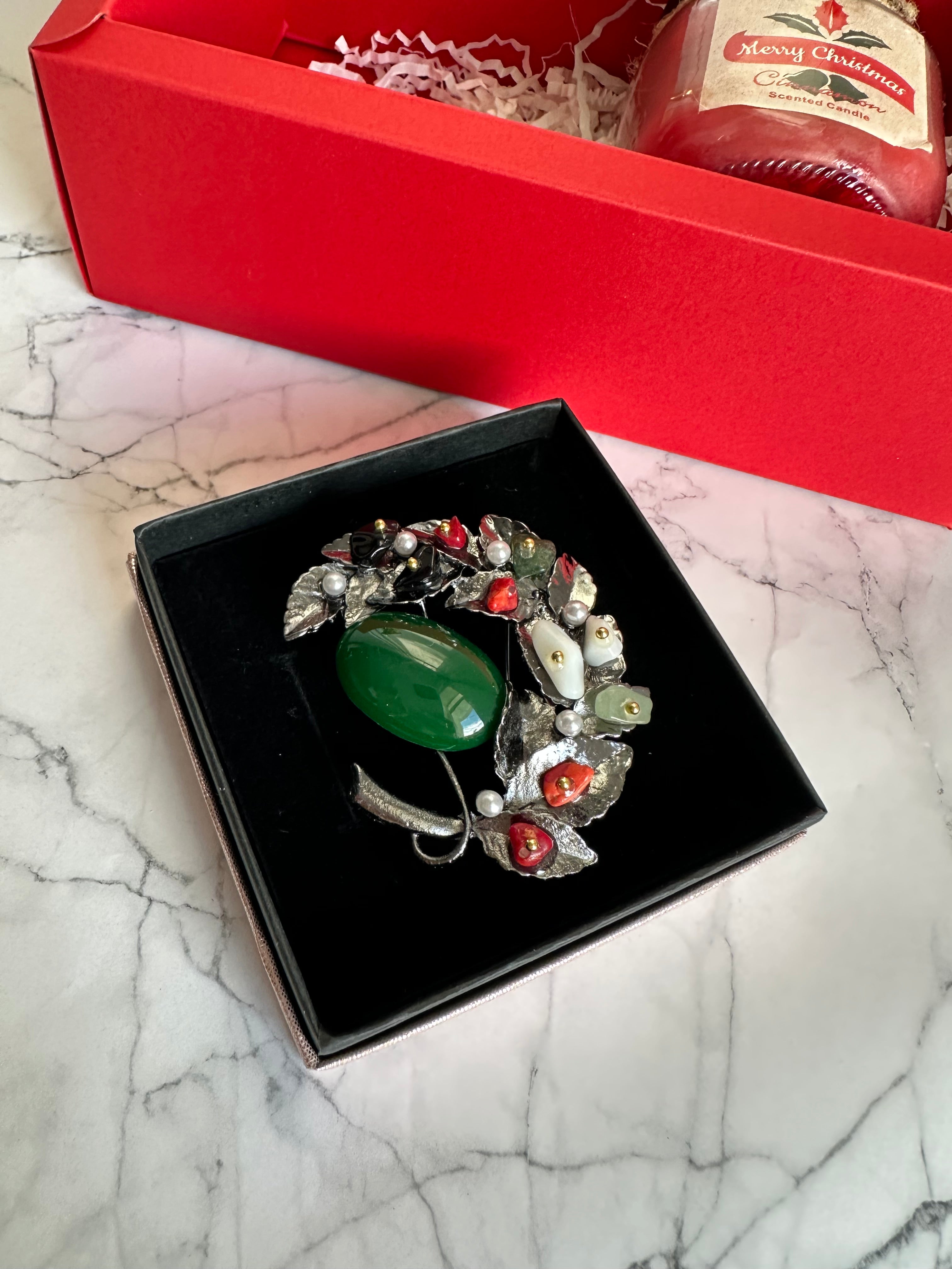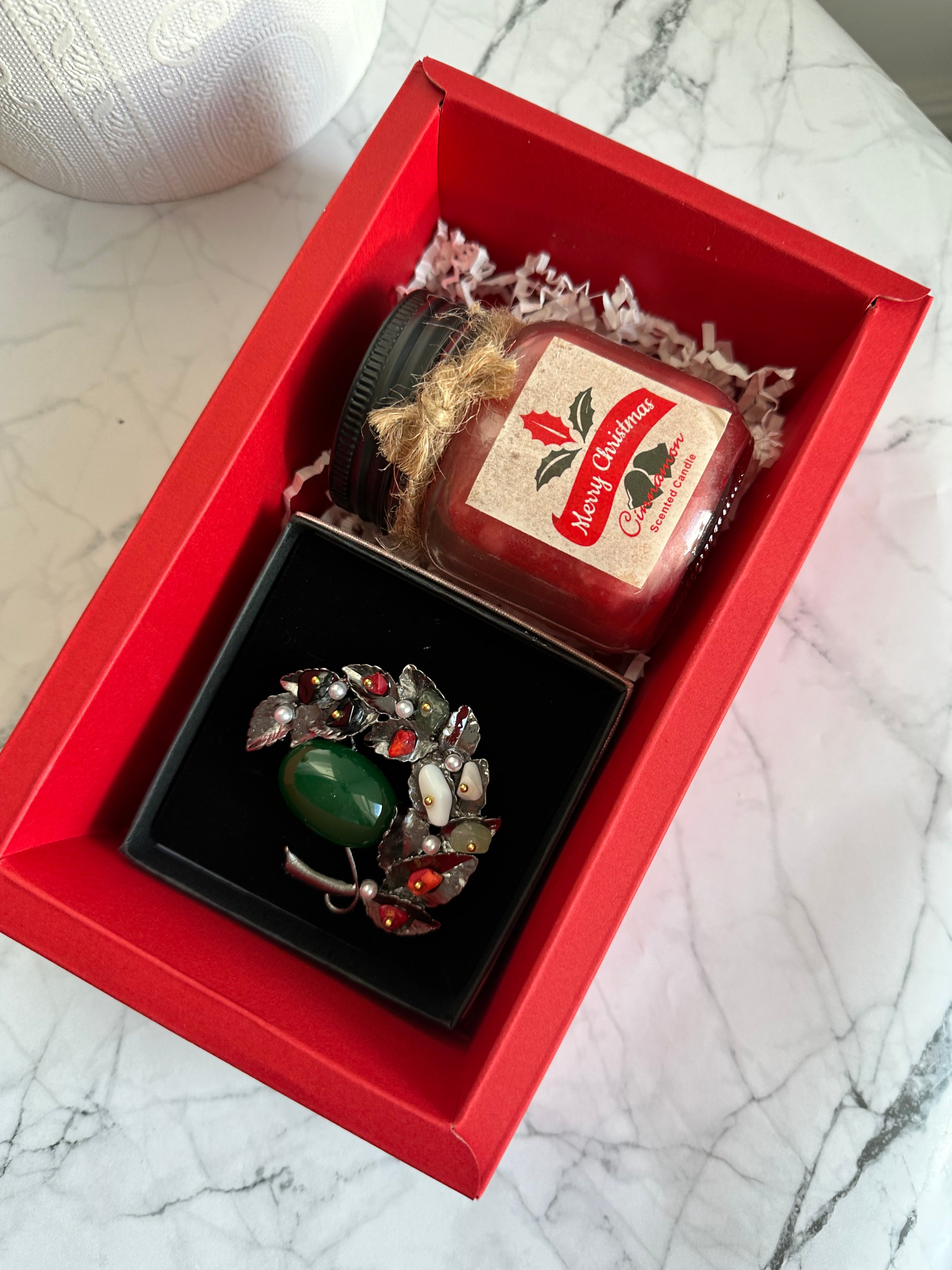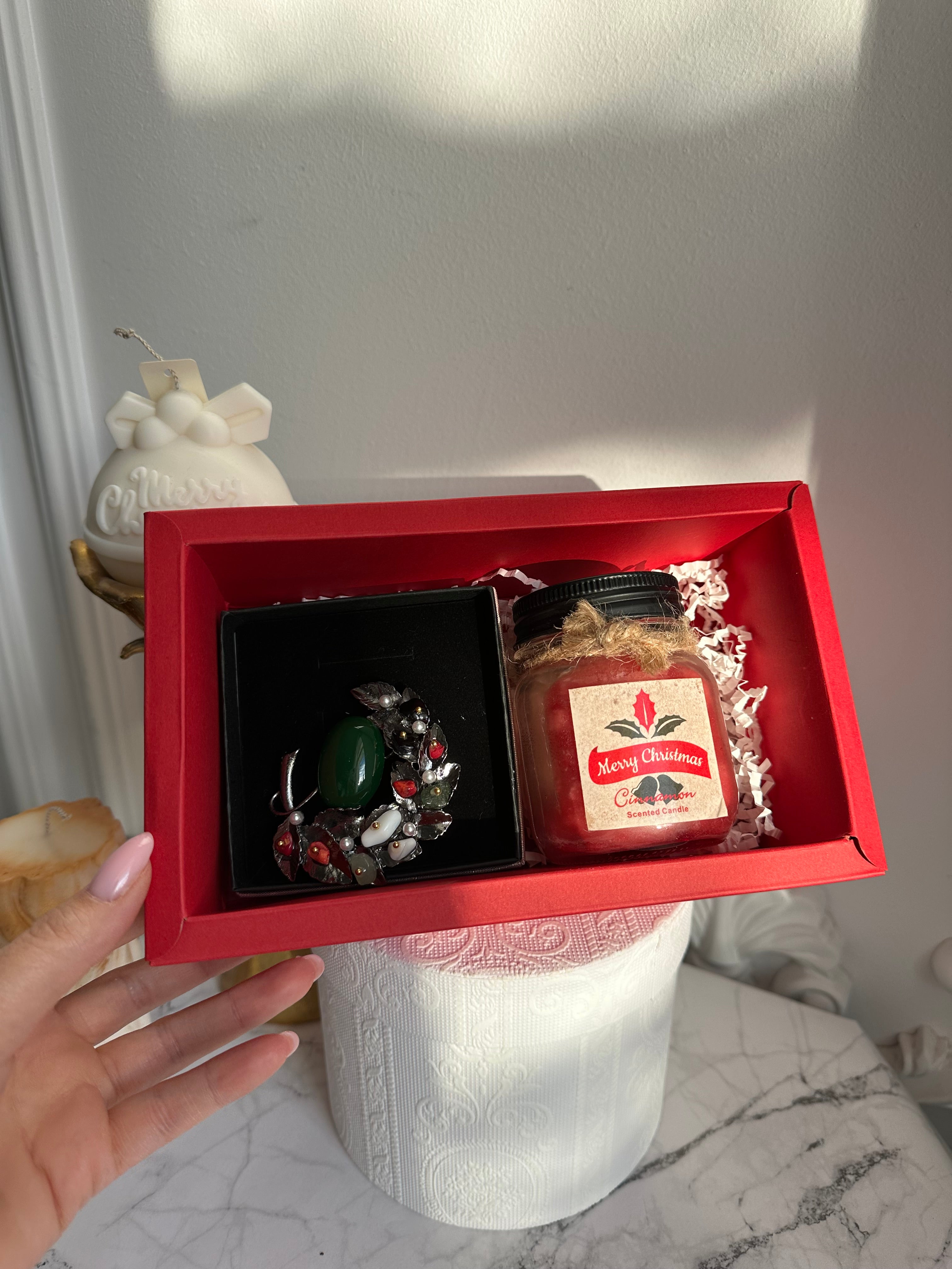 Set Cadou de Sărbători – Lumânare Parfumată & Broșă Mare de Crăciun