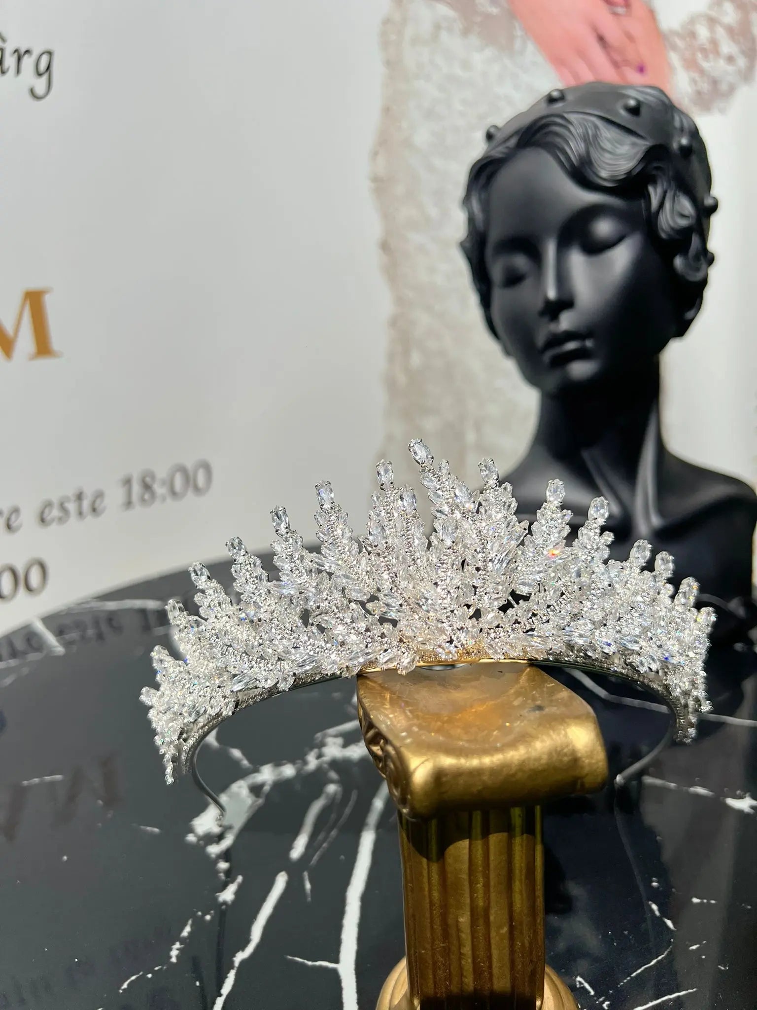 Diadema Arinela, zirconii cubice, placată aur alb, elemente Swarovski