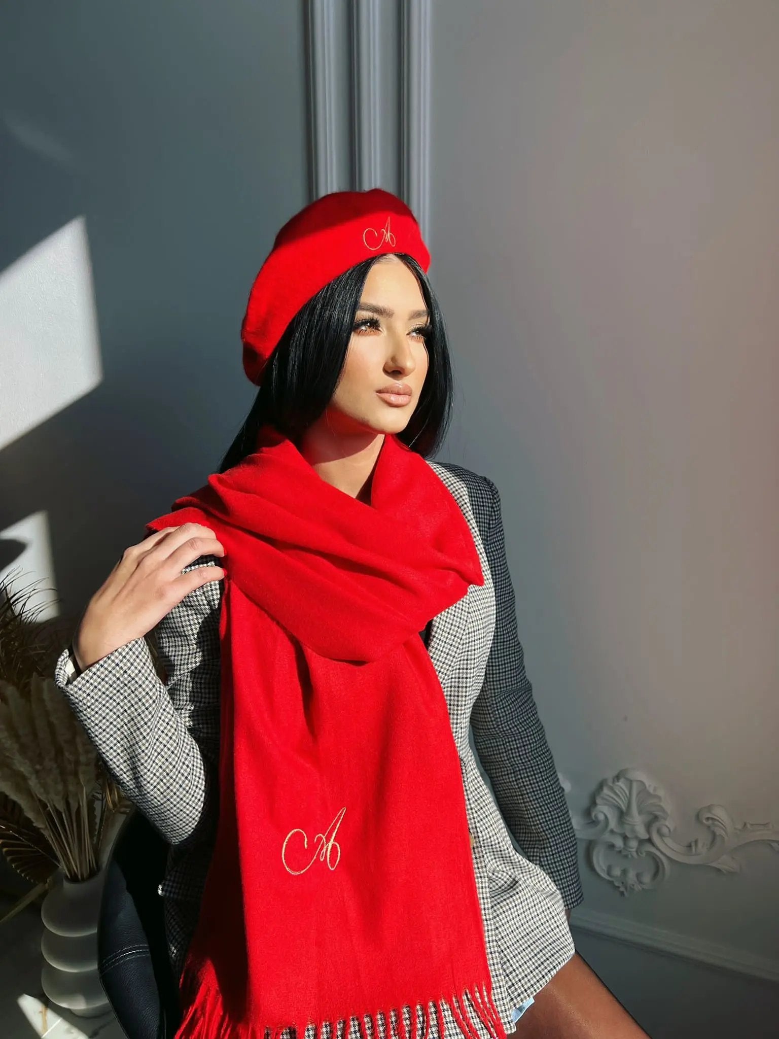 Set esarfa si bereta Elyss, cashmere, lana prelucrata
