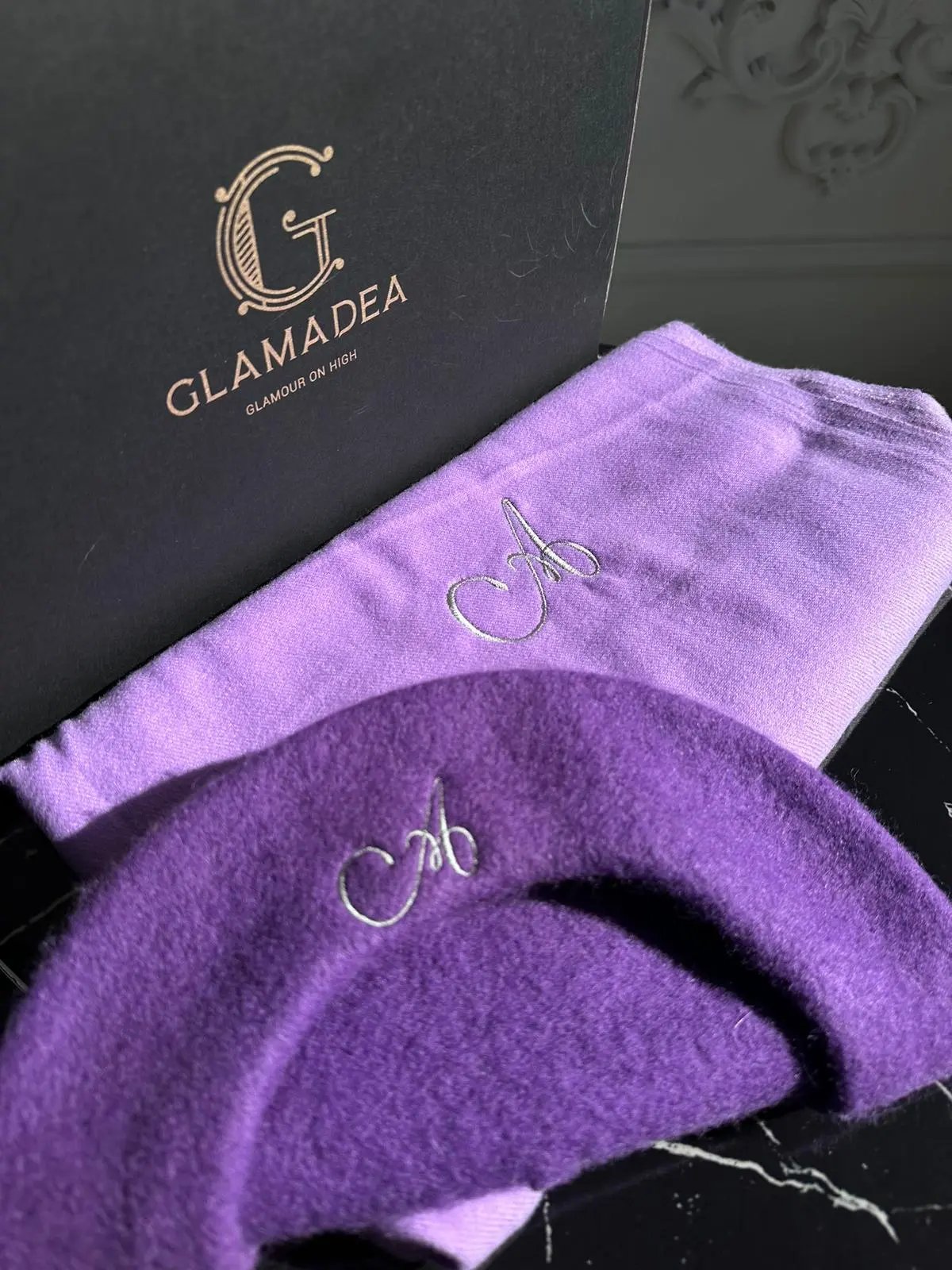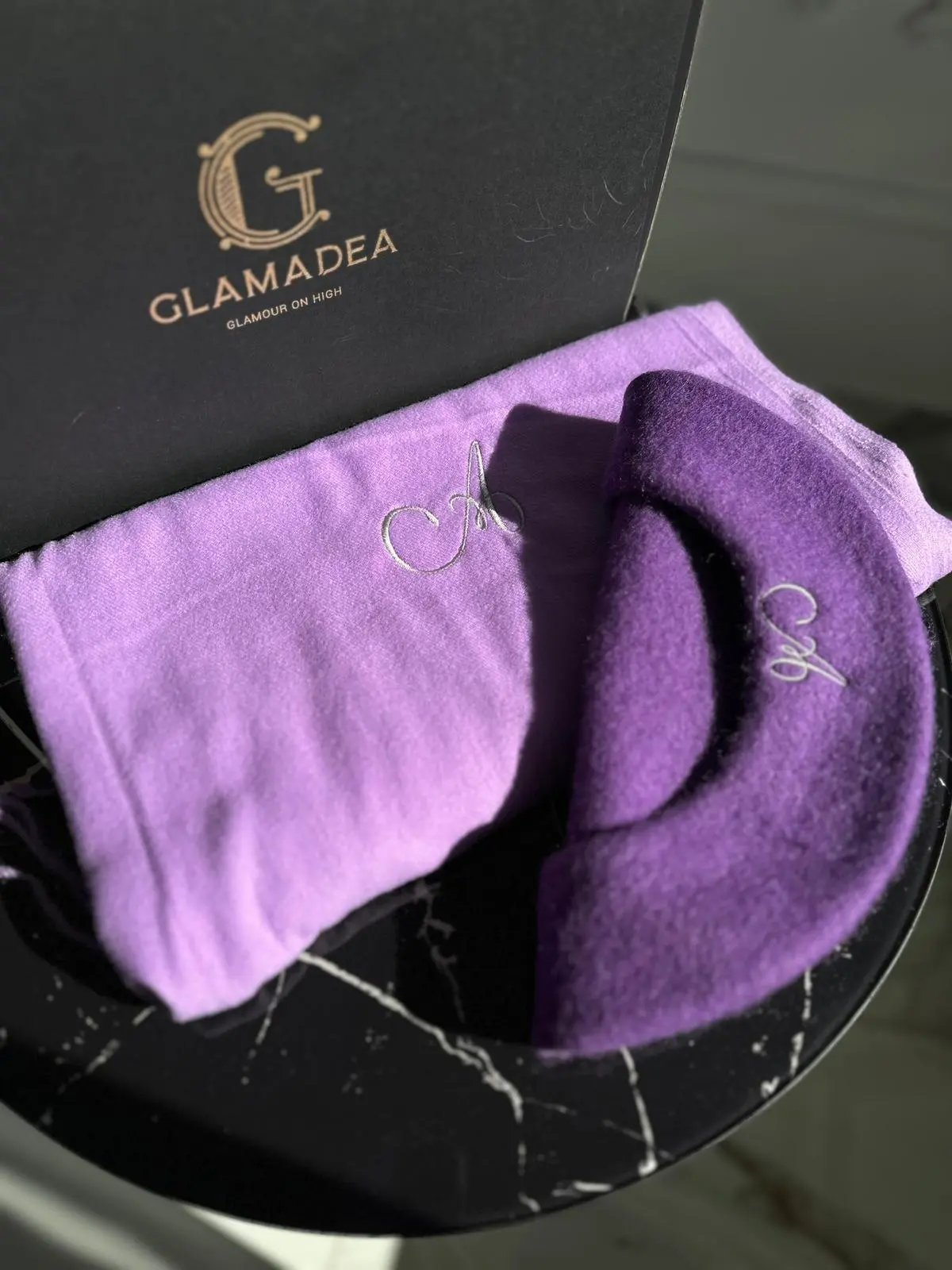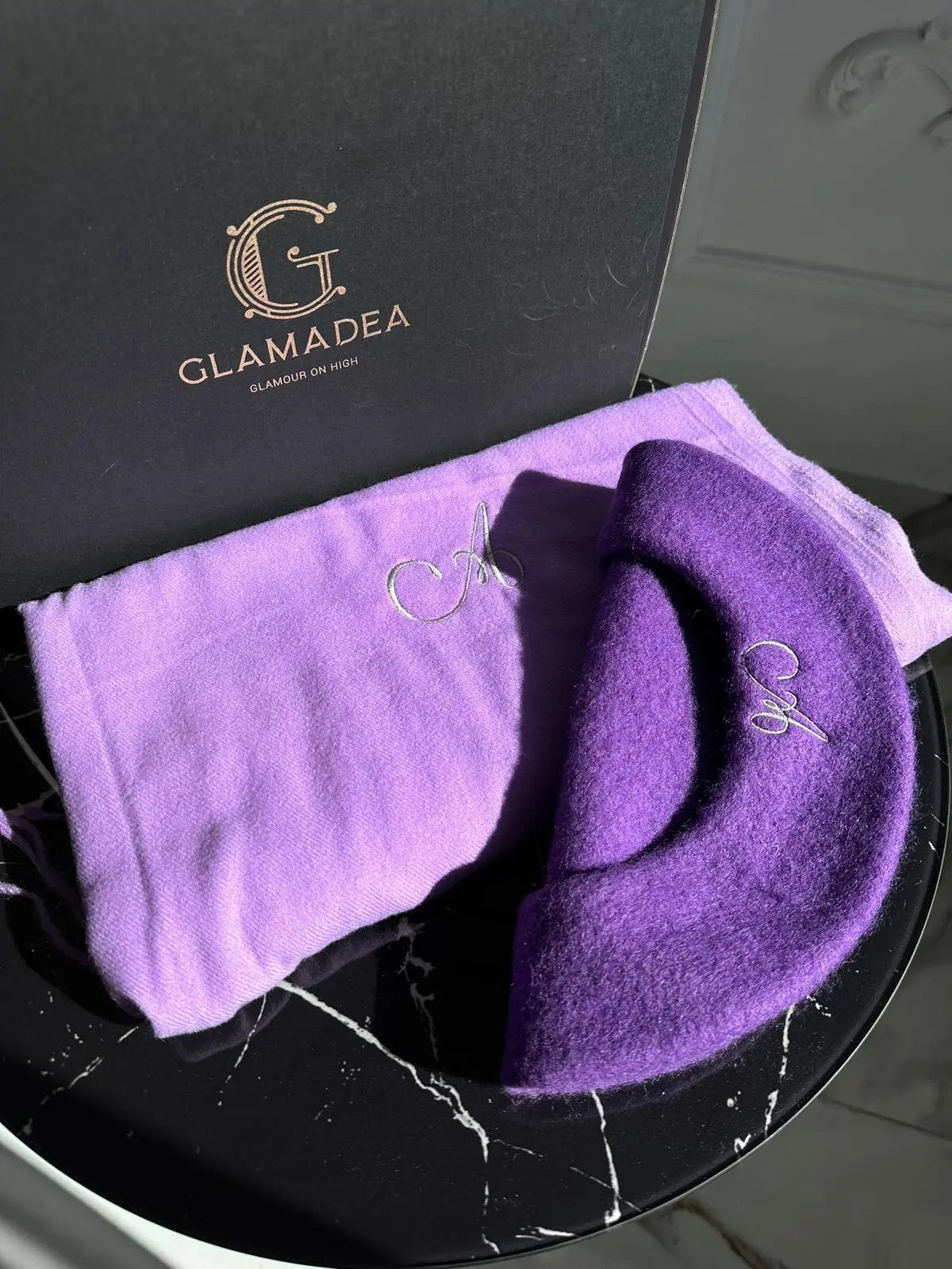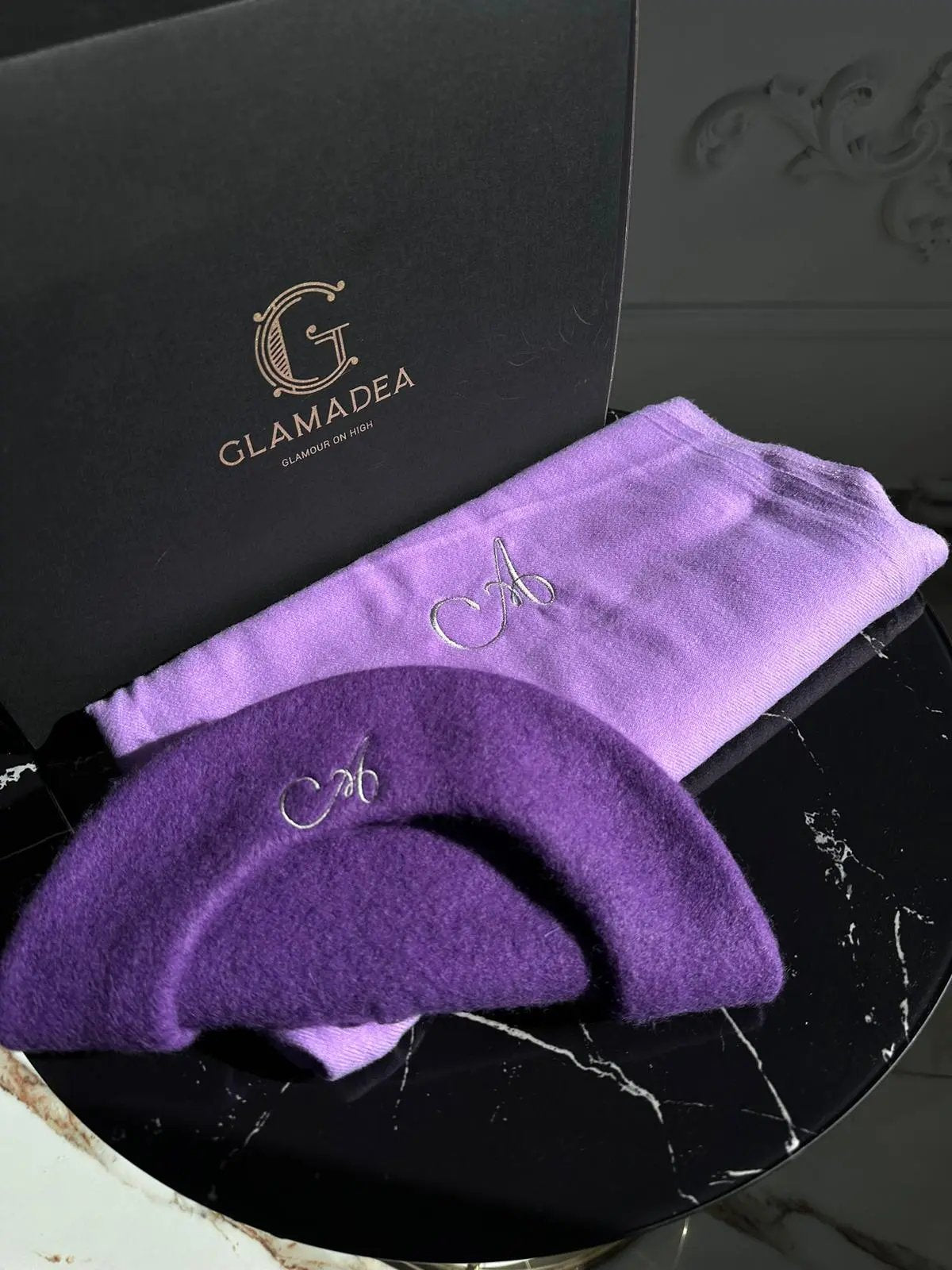Set esarfa si bereta Purple, cashmere, lana prelucrata