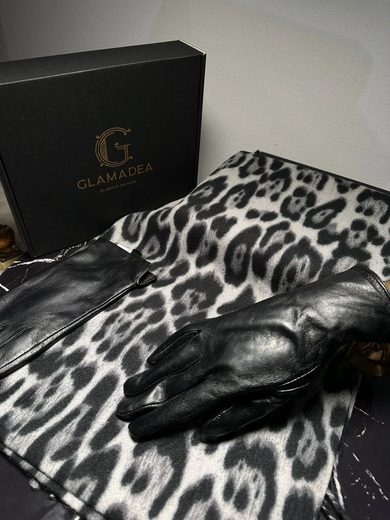 Setul elegant format din eșarfă din cashmere și mănuși din piele neagră este definiția rafinamentului discret. Eșarfa, moale și luxoasă, oferă o senzație plăcută de căldură și confort, în timp ce mănușile din piele neagră adaugă un plus de eleganță și finețe. Împreună, creează un accesoriu atemporal, perfect pentru femeia care apreciază calitatea, stilul clasic și detaliile care fac diferența.
